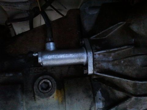 Nachdem sich aus heiterem Himmel nach der Überführungsfahrt eine Pfütze unter dem Hymer gebildet hat, ergab die erste Diagnose, dass etwas wie Bremsflüssigkeit aus der Kupplungsglocke austritt... aus so einer rechteckigen Öffnung an der Unterseite, die ggfs. sogar dazu da ist, als Ablauf zu dienen. Verdächtiger konnte ja nur der Nehmerzylinder sein, der seine Flüssigkeit durch Inkontinenz wohl in die Kupplungsglocke entlassen hat.
