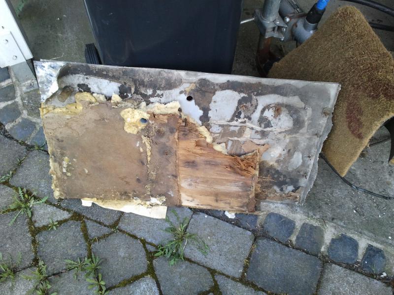 Unter dem Wasssertank im Heck hat´s ordentlich gegammelt... Wahrscheinlich eine Undichtigkeit einer Leitung oder eines Anschlusses im Wassersystem und unter dem großen Tank hat sich die Feuchtigkeit 10 Jahre gehalten... :-(
