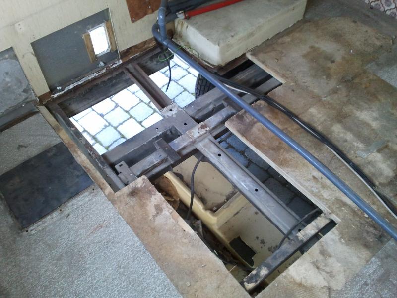 Alles was morsch ist, fliegt raus. Damit ergibt sich ein T-förmiges Stück vom Radkasten bis auf Höhe des Generatorfaches und dann so gut 1,2 m in die Fahrzeugmitte (Foto).