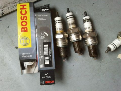 Simpler Zündkerzenwechsel - nach Tabelle des Online-Shops habe ich für einen 310er Benziner die Bosch WR 7 DC+ genommen.