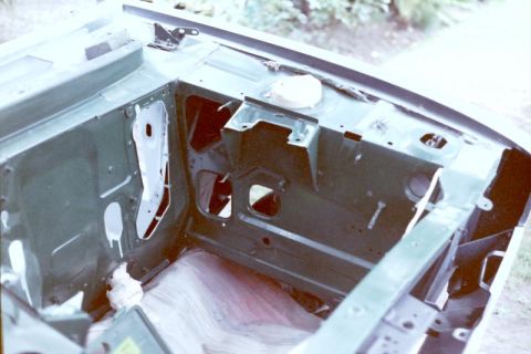 Nach Überarbeitung des Motorraums und dem Einschweissen einiger Bleche im Bereich der A-Säule habe ich den Motorraum mit der Sprühdose lackiert.
