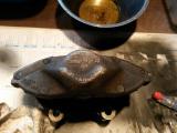Pünktlich zum Wochenende sind die Sachen dann da und die Bremssättel erfahren erst mal eine Reinigung. Aussen mit Bremsenreiniger, damit man nicht ständig schwarze Finger hat. In den Kolbenlaufflächen ein wenig mit 400er Leinen, danach mit feiner Stahlwolle - das aber eigentlich nur oberhalb der Dichtung, wo sich etwas Gammel festgesetzt hatte, der den Kolben womöglich bremst. Die Kolben selbst sehen glücklicherweise noch gut aus - also nur mal kurz drüberpoliert und ein oder zwei Stellen intensiver geputzt.