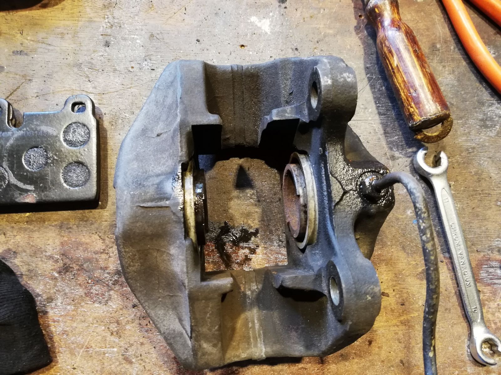 Ausgebaut, zerlegt, gereinigt. Die Kolben brauchten schon etwas Kraft, Rostlöser, Zeit und dann Druckluft, um "freiwillig" rauszukommen.