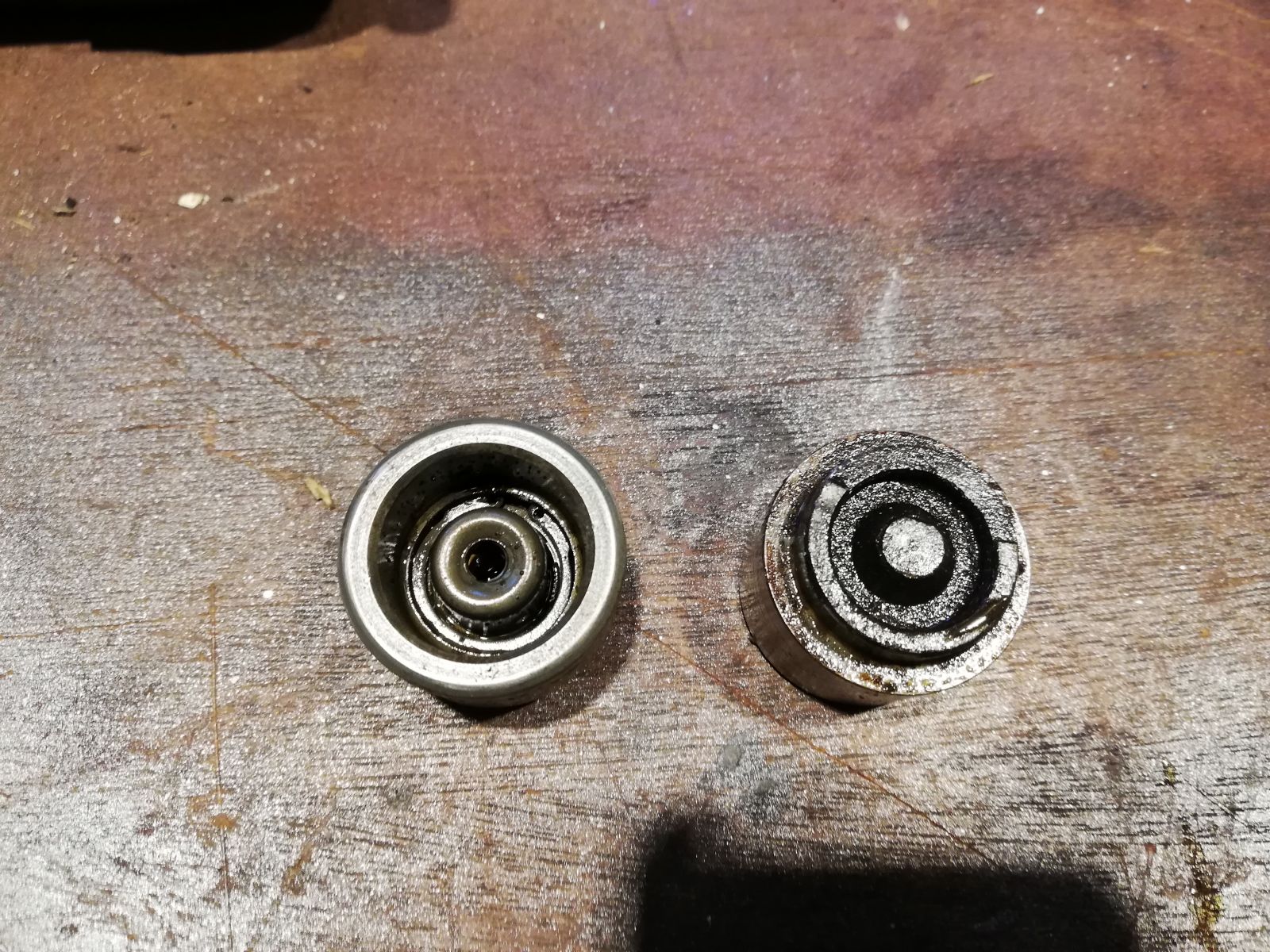 Ausgebaut, zerlegt, gereinigt. Die Kolben brauchten schon etwas Kraft, Rostlöser, Zeit und dann Druckluft, um "freiwillig" rauszukommen.