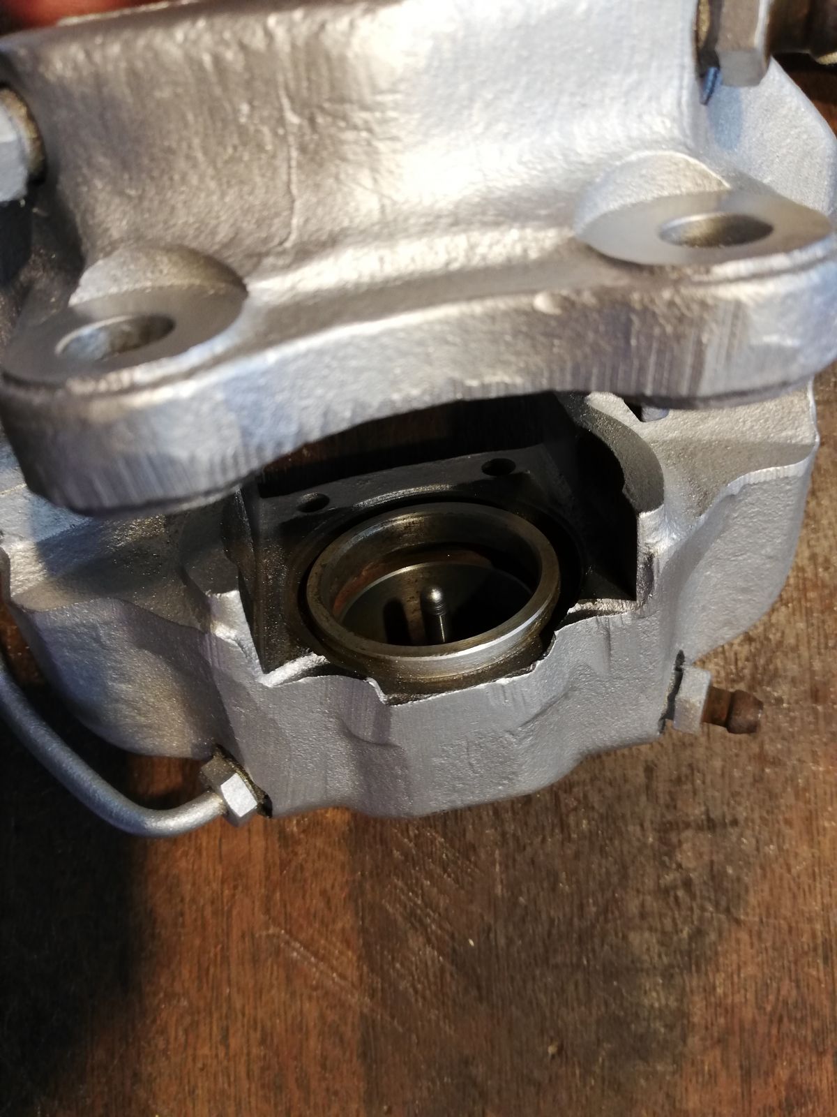Wichtig und ein Punkt, den ich gelernt habe: Die Aussparungen an den Kolben haben ihren Sinn. :-) Damit stellt man einen 20 Grad Winkel ein, so dass die Scheiben in Fahrtrichtung quasi in die weiter geöffneten Belagseiten reinlaufen... Schlecht zu erklären per Text. Muss man sich mal als Grafik ansehen. Die Suchmaschine hilft.