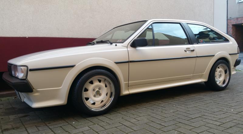 weiße Frontblinker-ATS CUP 7x15 ET 20-H&R Federn 40/40 mit Golf 1 GTI Dämpfern-Gilette Endschalldämpfer-32 cm Sportlenkrad Raid 13 (weiß foliert)-Doppel DIN Radio JVC KW-V 40BT-4x Crunch GTi 16,5 cm (je 100 Watt RMS)+NXS NS-4400 13 cm (100 Watt RMS) Frontlautsprecher-20 cm Hifonics TS 830 (125 Watt RMS) Hecklautsprecher-2x Rockford Fosgate T1 12D2 (je 600 Watt RMS)-Sonido Mask FX 2000.1D Monoblock (1920 Watt RMS an 1 Ohm)-MB Quart Discus DSC4125 (4x196 Watt RMS)-Airbrush an Innenspiegel und Lautsprechergittern